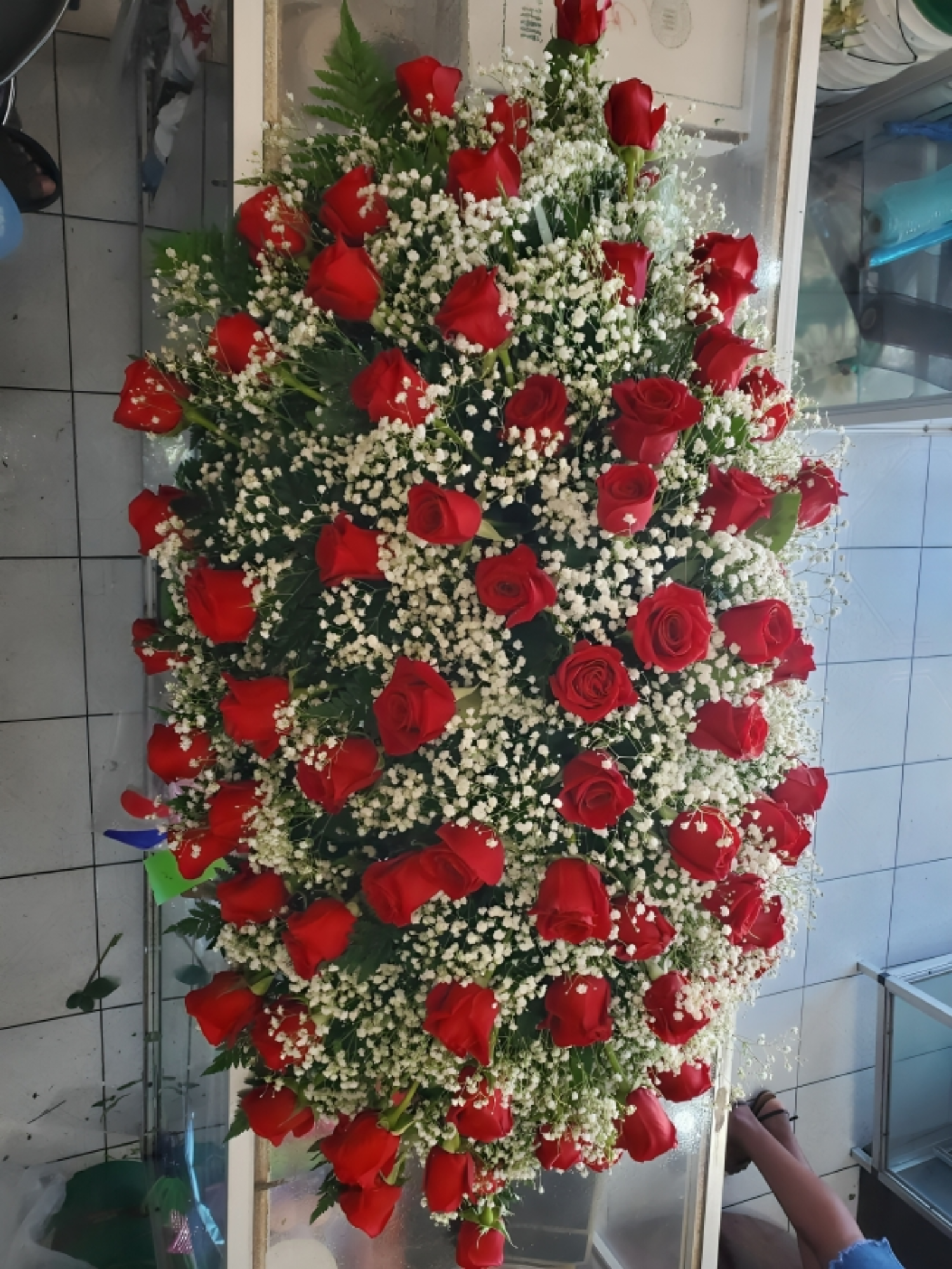 Super Casket Sprays are luxurious, full-length floral arrangements designed to make a grand and heartfelt tribute. Overflowing with premium blooms like roses, lilies, and orchids, they drape gracefully across the entire casket, offering a stunning display of love and remembrance. Ideal for honoring a loved one with elegance and beauty, these sprays are customized to reflect personal sentiments, color themes, or favorite flowers. Super Casket Sprays create a memorable centerpiece for any funeral or memorial service.
